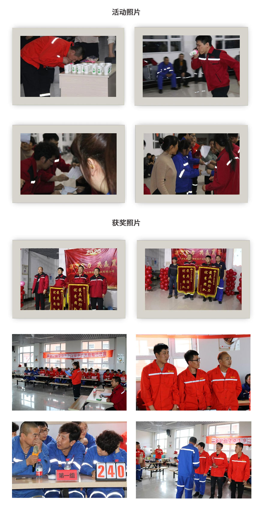 在節(jié)日期間,在員工工作之余,公司組織豐富多彩的文體活動(dòng),豐富員工業(yè)余生活,增強(qiáng)員工團(tuán)隊(duì)意識(shí)和凝聚力;組織安全知識(shí)競賽及安全培訓(xùn),不斷提高員工安全風(fēng)險(xiǎn)意識(shí),規(guī)避風(fēng)險(xiǎn)技能大大增強(qiáng);開展“我愛礦山” “綠水藍(lán)天”環(huán)保公益活動(dòng)等,積極參加綠 色礦山通勤車輛建設(shè)。組織車間開展技能比武活動(dòng)、提高員工自身技術(shù)素質(zhì)。